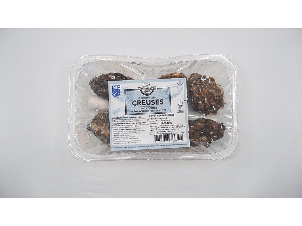 Čerstvé velké ústřice balené v ochranné atmosféře (MAP) pro zachování jejich přirozené chuti a čerstvosti. Váha balení je cca 0,670 kg. Ústřice jsou ceněné pro svou jemnou, lehce slanou chuť a vysoký obsah živin. Ideální pro milovníky mořských plodů, kteří ocení kvalitu a čerstvost.