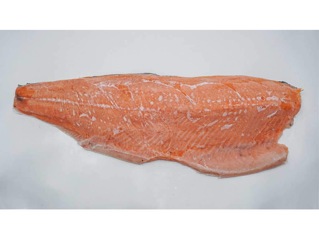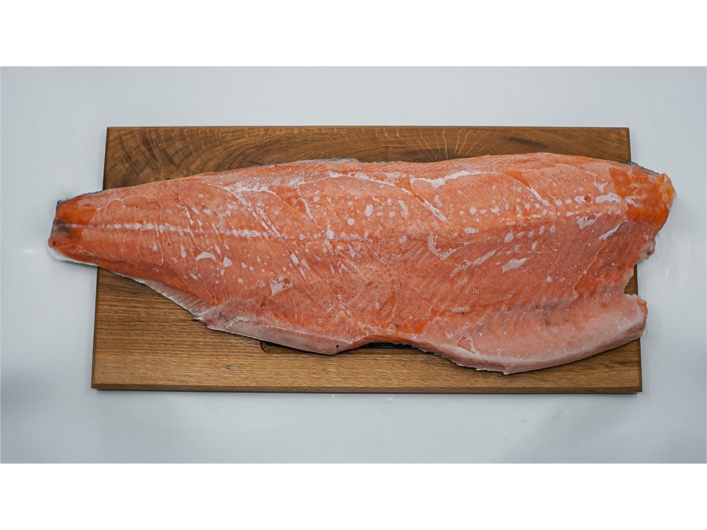 Losos obecný – filet D trim (1,7–2,0 kg), SUSHI, mražený. Prémiový filet z lososa obecného (Salmo salar) s D trim úpravou. Mražený, vhodný ke konzumaci za syrova – ideální na sushi, sashimi i tatarák.