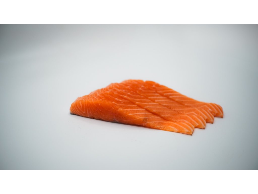 Čerstvá porce lososa obecného s kůží, cca 60 g, uchovávaná na ledu. Porcováno přímo z čerstvé lososové filety v přesném kalibru pro jednotnou velikost a kvalitu.