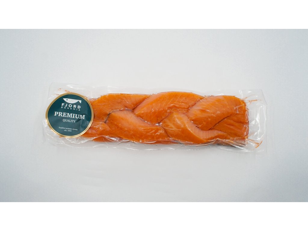 Dárkové balení obsahující prémiový uzený losos upravený do tvaru vánočky
