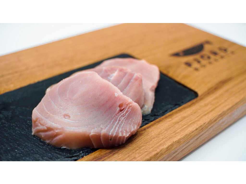 Mražené kousky tuňáka, vakuově balené, hmotnost 1 kg. Praktická surovina s pevnou strukturou a výraznou chutí, vhodná pro teplou i studenou kuchyni.