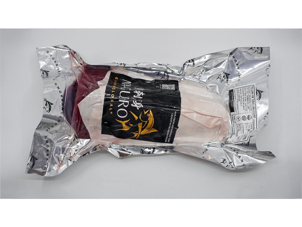 Prémiový tuňák Sashimi AAA, řez Center Cut, o hmotnosti 2–4 kg / 1 kartón 20 kg. Tento výběrový středový řez z tuňáka nabízí ideální poměr chuti, barvy a textury, určený především pro přípravu sushi a sashimi. Označení kvality AAA znamená nejvyšší stupeň čerstvosti, barvy a jemnosti masa.