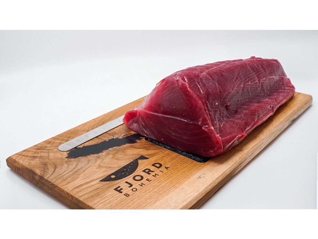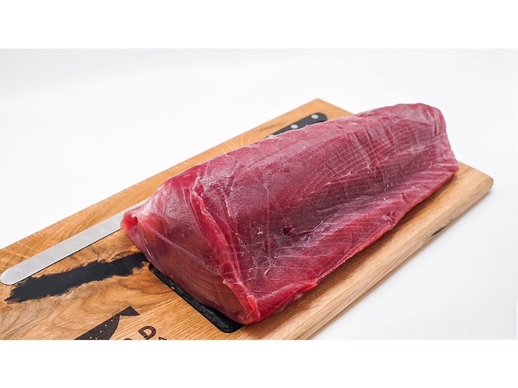 Prémiový tuňák Sashimi AAA, řez Center Cut, hmotnost 2–4 kg. Nejvyšší kvalita pro sushi a sashimi. Čerstvý, vhodný k syrové konzumaci.