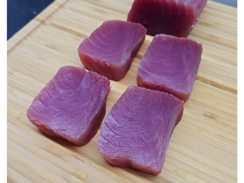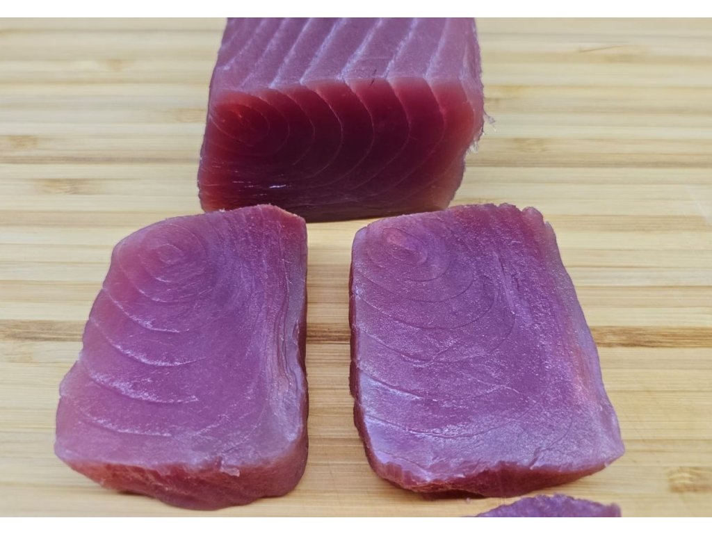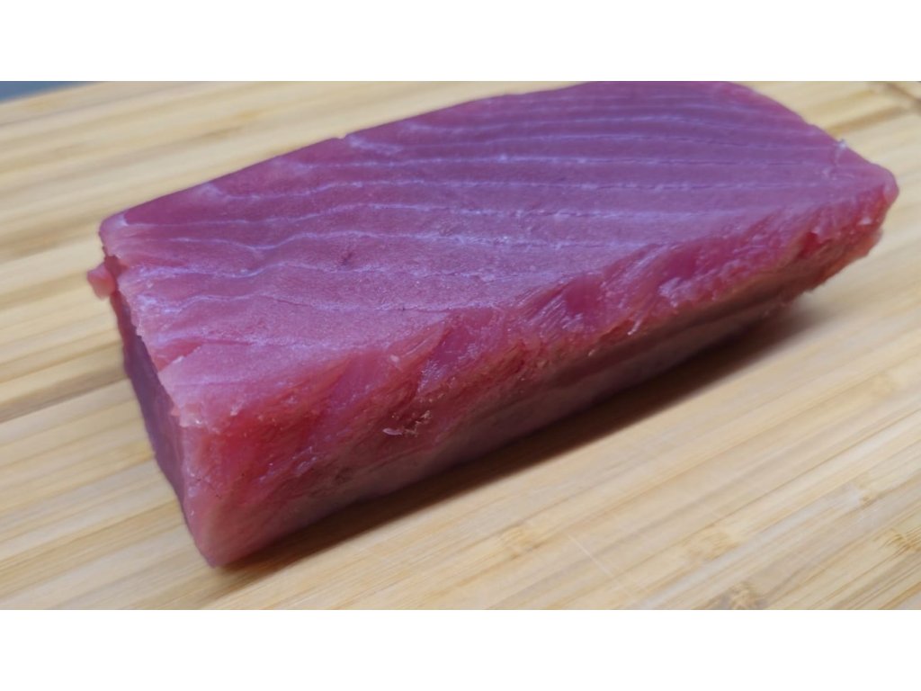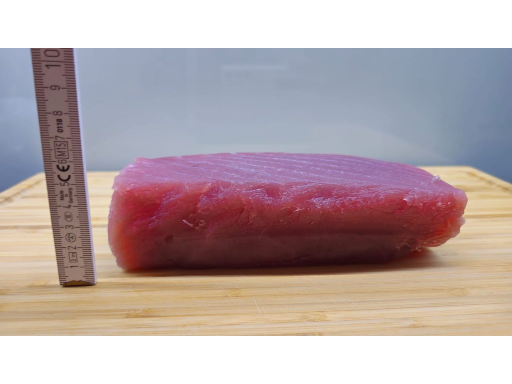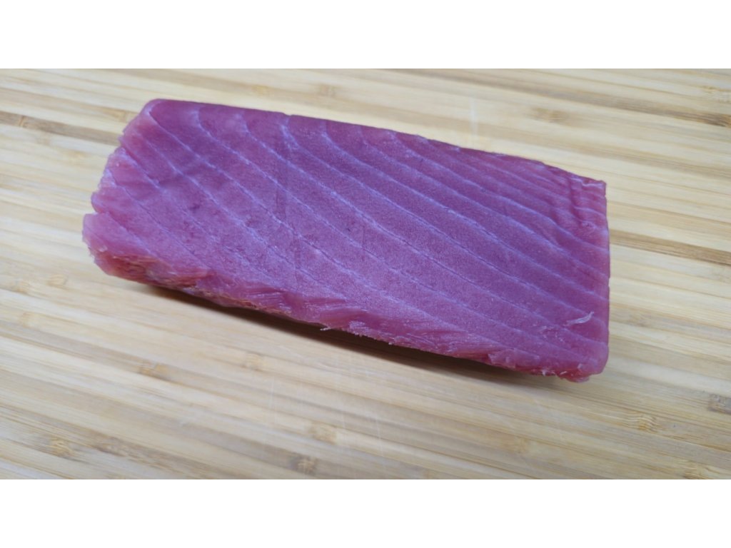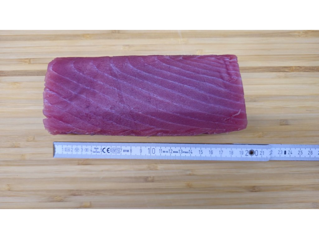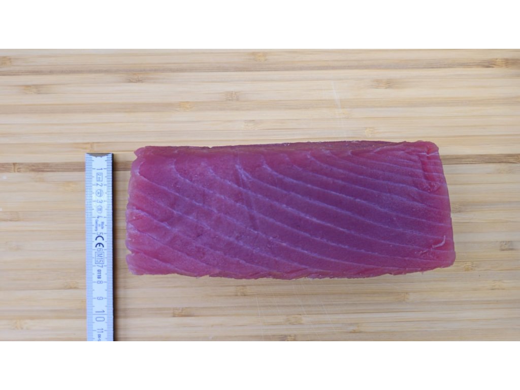 Prémiový tuňák žlutoploutvý SAKU cca 0,65 kg, kvalita Sashimi A+, vakuově balený. Ideální pro sushi, sashimi i tataki. Původ: Filipíny. Prvotřídní kvalita. Doprava je letecky Emirates SkyCargo