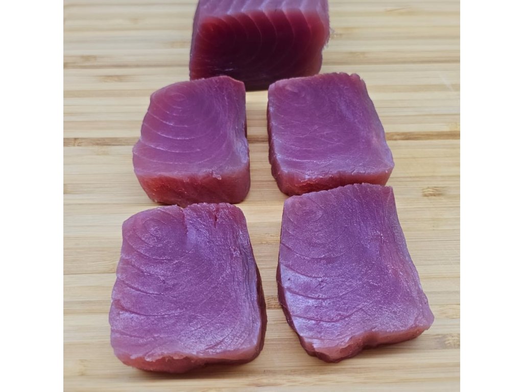 Tuňák žlutoploutvý (Yellowfin Tuna) v provedení SAKU představuje dokonale opracovaný blok z nejlepší části filetu, určený především pro sushi a sashimi.