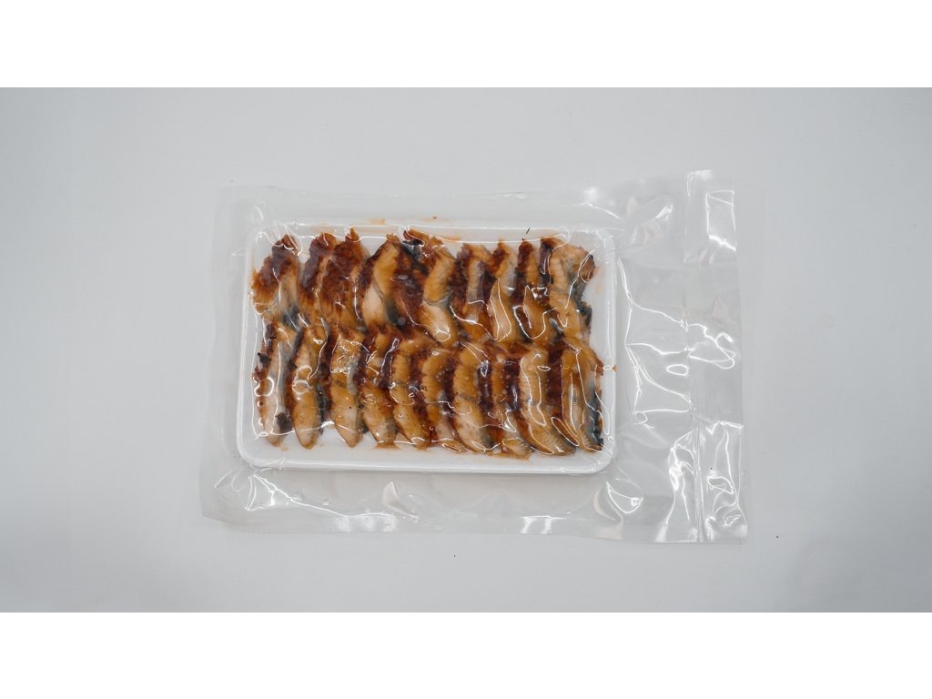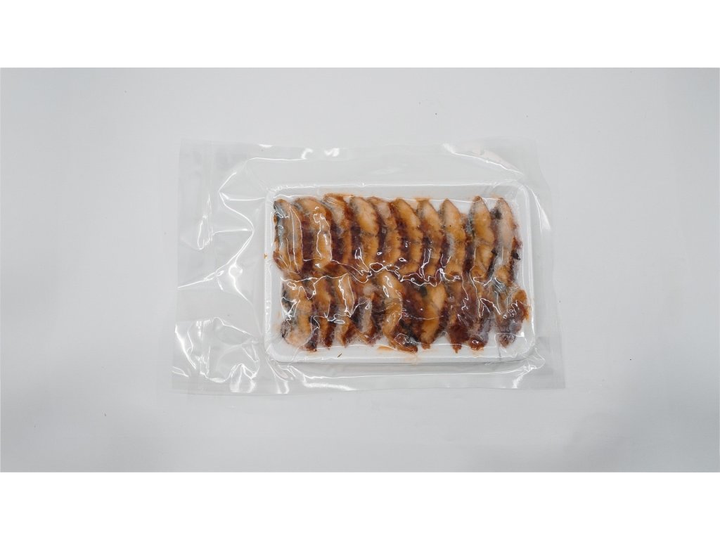 Úhoř Unagi Kabayaki je tradiční japonská specialita, při které je úhoř marinován ve sladké sójové omáčce a poté grilován. Plátky jsou již hotové, stačí je pouze ohřát nebo rozmrazit a jsou připravené k použití.