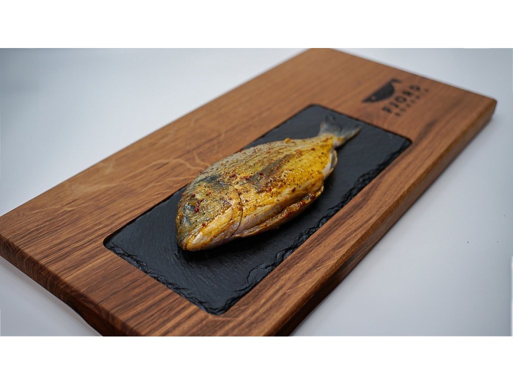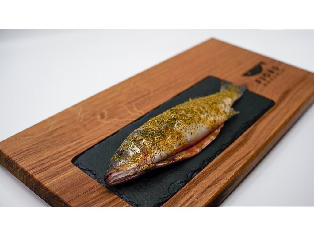 Vlk mořský celý kuchaný v marinádě z limety a pepře, balení cca 330 g – ideální pro pečení nebo grilování.
